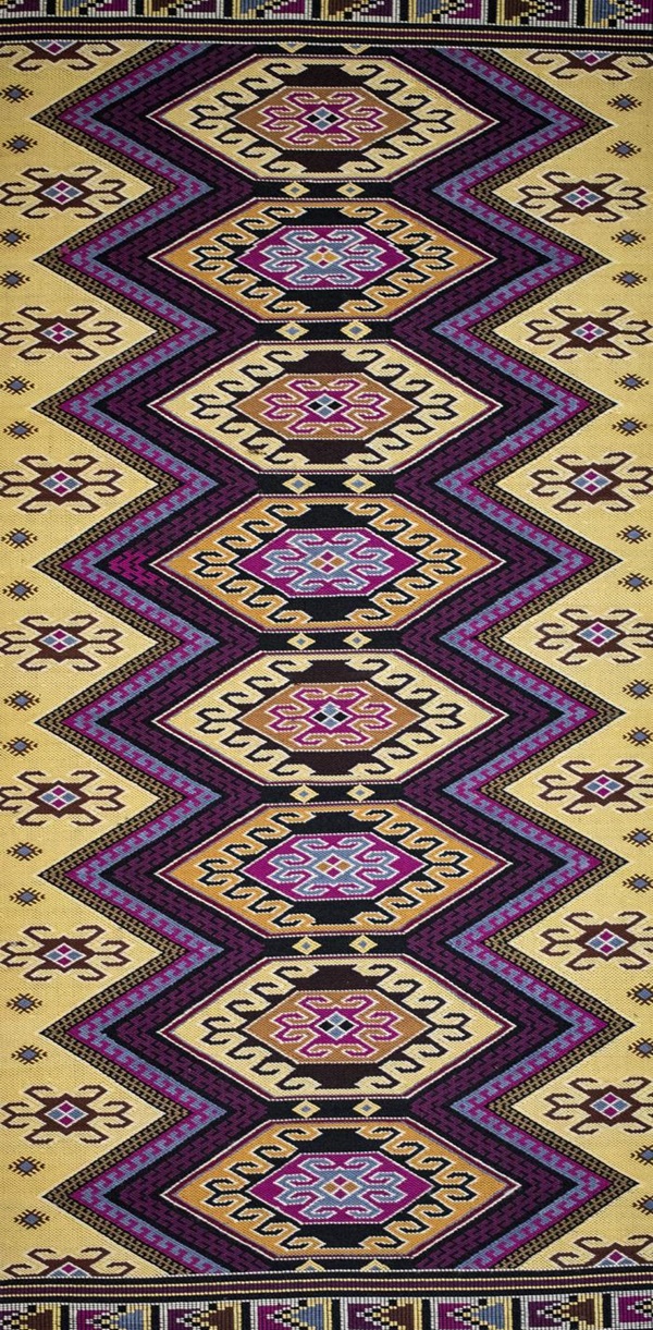 西兰卡普的织锦纹样流传至今有三百多种,纹样的创作通过模仿自然、综合创造物像、抽象变形提炼造型要素,如阳雀花纹、蛇纹、燕子纹、卍字纹、马纹、龙凤纹、人马纹等等。